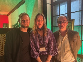 On April 4 at the Emerald Bar and Grill, during the Society of Cinema and Media Studies Conference, Professor Griffiths, along with Prof Rob King of Columbia University, and Brian Jacobson of the California Institute of Technology, celebrated the publication of their three new books from Columbia University Press’ Film and Culture series: Nomadic Cinema: A Cultural Geography of the Expedition Film, Man of Taste, the Erotic Cinema of Radley Metzger, and The Cinema of Extractions: Film Materials and Their Forms.